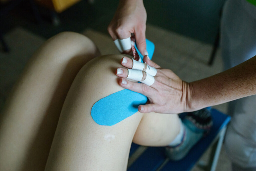 Таня помогает Люде затейпировать колено, чтобы снизить риск травмы во время игры. Фото: Кристина Бражникова | Гласная