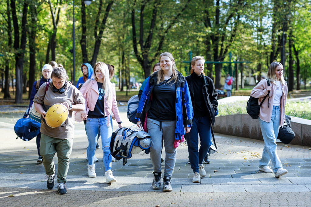 «Единороги» идут на стадион после обсуждения игровой стратегии с легионерками из Воронежа в парке. Фото: Кристина Бражникова | Гласная