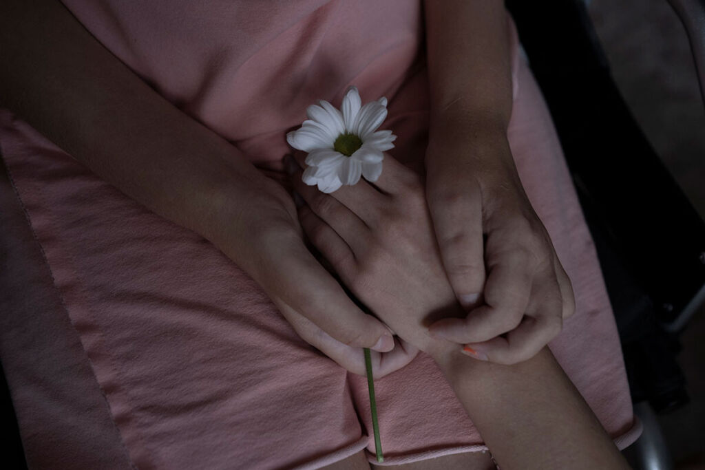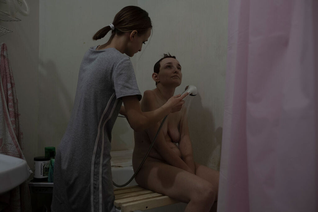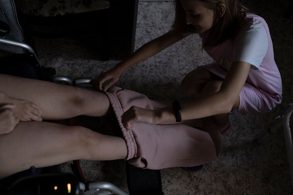 Когда мы переехали к деду, мама уже была в инвалидном кресле, не могла ухаживать за собой. Весь уход лег на меня: пересадить на туалет, посадить в ванну, помыть, одеть, покормить. Мы жили вшестером тогда, я готовила на всех, убиралась. Человек ко всему привыкает, и я привыкла. Иногда мама падала после ванной. Я ее поднять не могла, она так и лежала, пока кто-то из взрослых не придет, бывало, и по часу. Мне нужно было ходить в школу, седьмой класс, но я не успевала — пришлось перевестись на дистанционку.