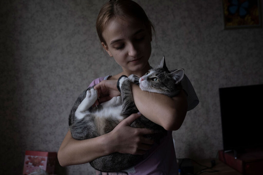 В доме 33-летней Инны и ее 16-летней дочери Даши чисто и тепло. По шкафам прыгает кошка Буся, время от времени играя с новогодними гирляндами, фоном звучит песня любимого Инной рэпера Niletto.