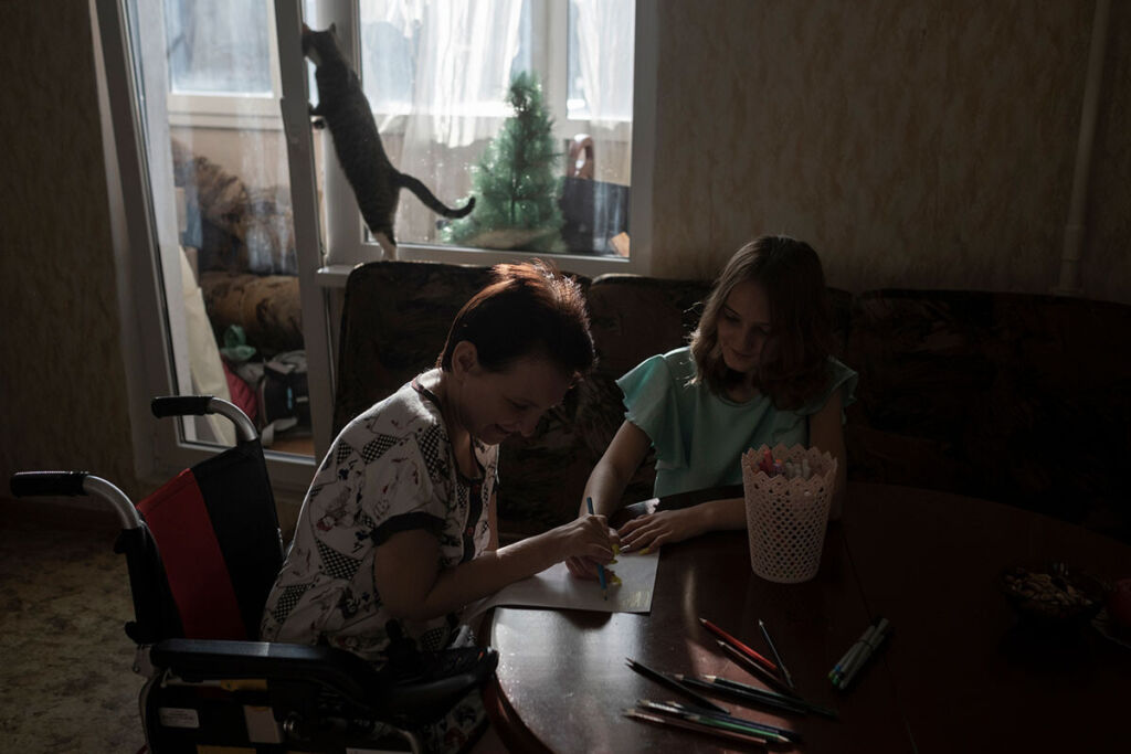 Кажется, что жизнь этой маленькой семьи из Петербурга не отличается от миллионов других. За исключением одного: Инна прикована к инвалидному креслу, весь уход за ней и общий быт лежит на плечах ее дочери-подростка. У Инны БАС — боковой амиотрофический склероз, неизлечимое прогрессирующее заболевание нервной системы. При БАС нейроны, отвечающие за контроль произвольных движений, перестают посылать сигнал мышцам — и постепенно человек теряет способность ходить, говорить и дышать.
