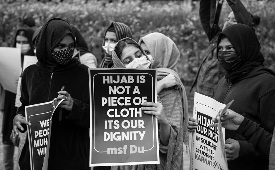 Девушки из Федерации мусульманских студентов Делийского университета отстаивают право носить хиджаб в учебных заведениях. Индия, 2022 год. Фото: PradeepGaurs | Shutterstock