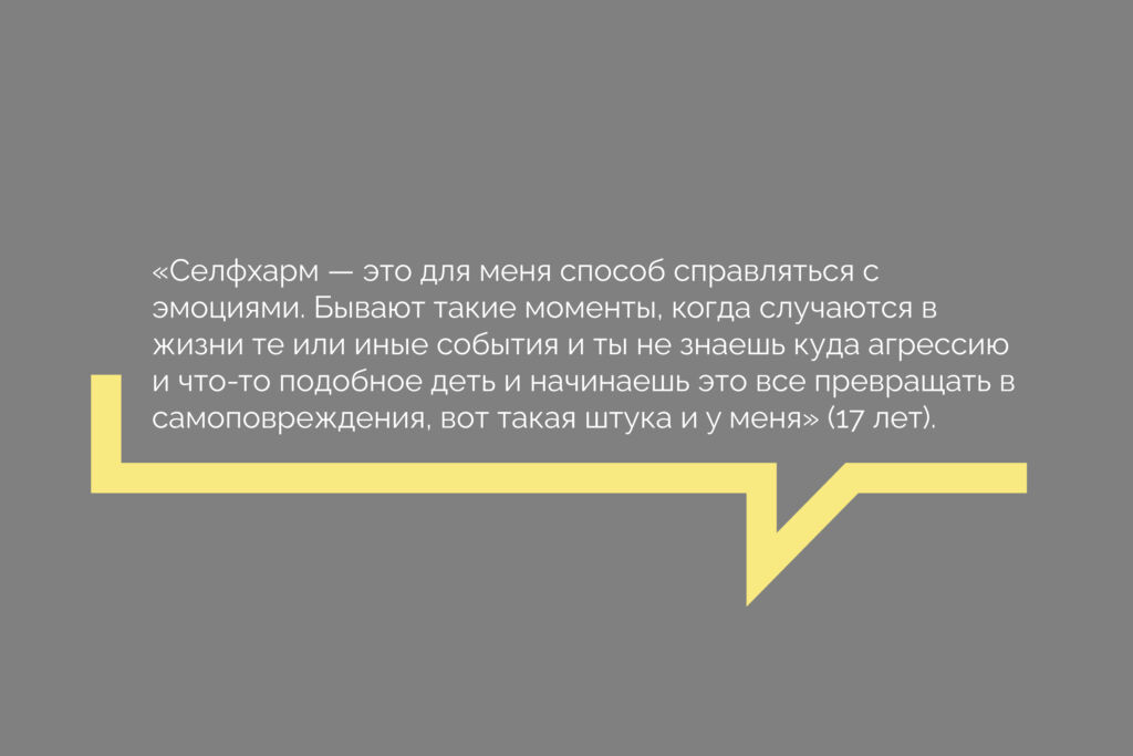 Самые популярные запросы в чате, наряду с проблемами в отношениях или суицидальными мыслями, — расстройства пищевого поведения, интимные вопросы, практики самоповреждения (селфхарм).