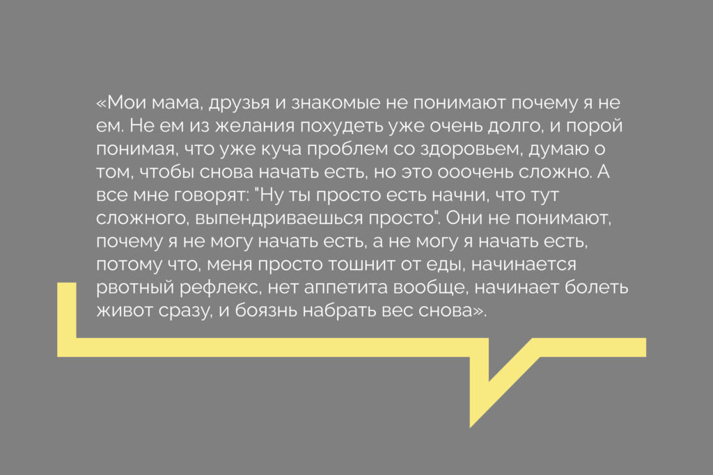 «Мы пишем про свой опыт очень осторожно, не нарушая границ. Можем поделиться, “как было у меня”, если подросток хочет, — рассказывает Евгения. — Из-за нарушения дистанции подростки могут подумать, что мы дружим. А наши отношения — терапевтические. Важно, чтобы они шли дальше, в реальный мир, обращались за психологической помощью или к неврологам». Чат не может решить всех проблем и полноценно заменить терапию.