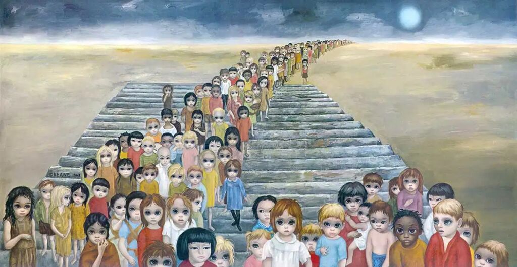 Маргарет Кин родилась в 1927 году, выросла в Нашвилле в США и изучала искусство в городском художественном институте Уоткинса. С 11 лет она рисовала детей с большими грустными глазами. Впоследствии они стали фирменной чертой ее картин, принесших Маргарет и ее мужу Уолтеру Кину сотни тысяч долларов.