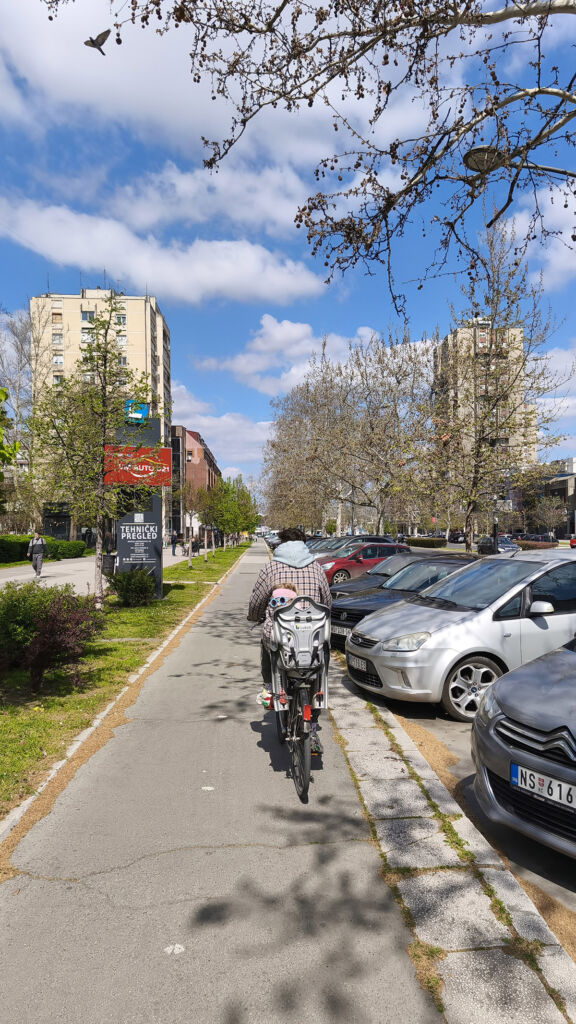 Еще я увидела в интернете фотографии сербского города Нови-Сада — оказалось, там можно спокойно ездить на велосипеде. Наверное, отчасти из-за того, что я нарисовала себе классный образ, как мы будем сажать ребенка в велокресло и ездить с ней по городу, мы туда и переехали.